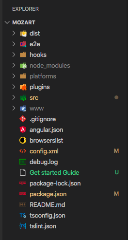 All projects within a workspace share a CLI configuration context. The top level of the workspace contains workspace-wide configuration files, configuration files for the root-level application, and subfolders for the root-level application source and test files.