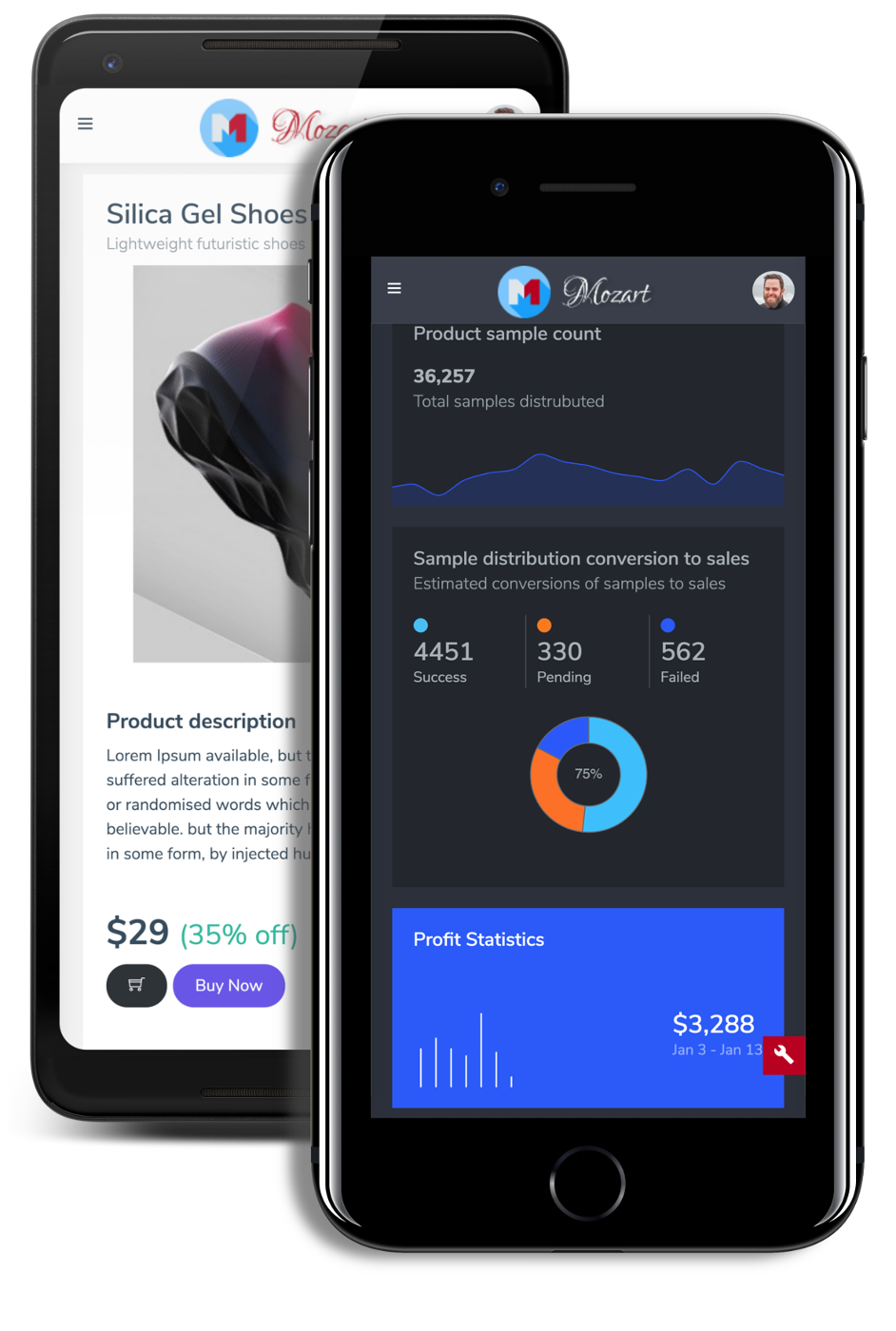 Dark theme ? Just 1 click on customization pane. Change header color ? Just 1 line change in code. Yes, its that easy, whole UI Kit is very easily customizable.