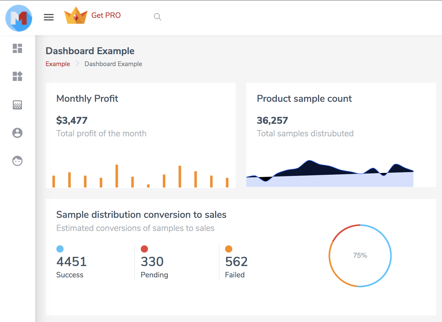 Mozart Angular Lite will empower you to easily pick example pages and ready to use components to build a powerful web app, You can use it to make a Data heavy application as the application runtime is very less. You can save alot of time configuring menu and sidebar, as well as profile page because we have already done it for you. Basic pages like login, register, account comes as standard in Free Mozart Angular Lite Template.